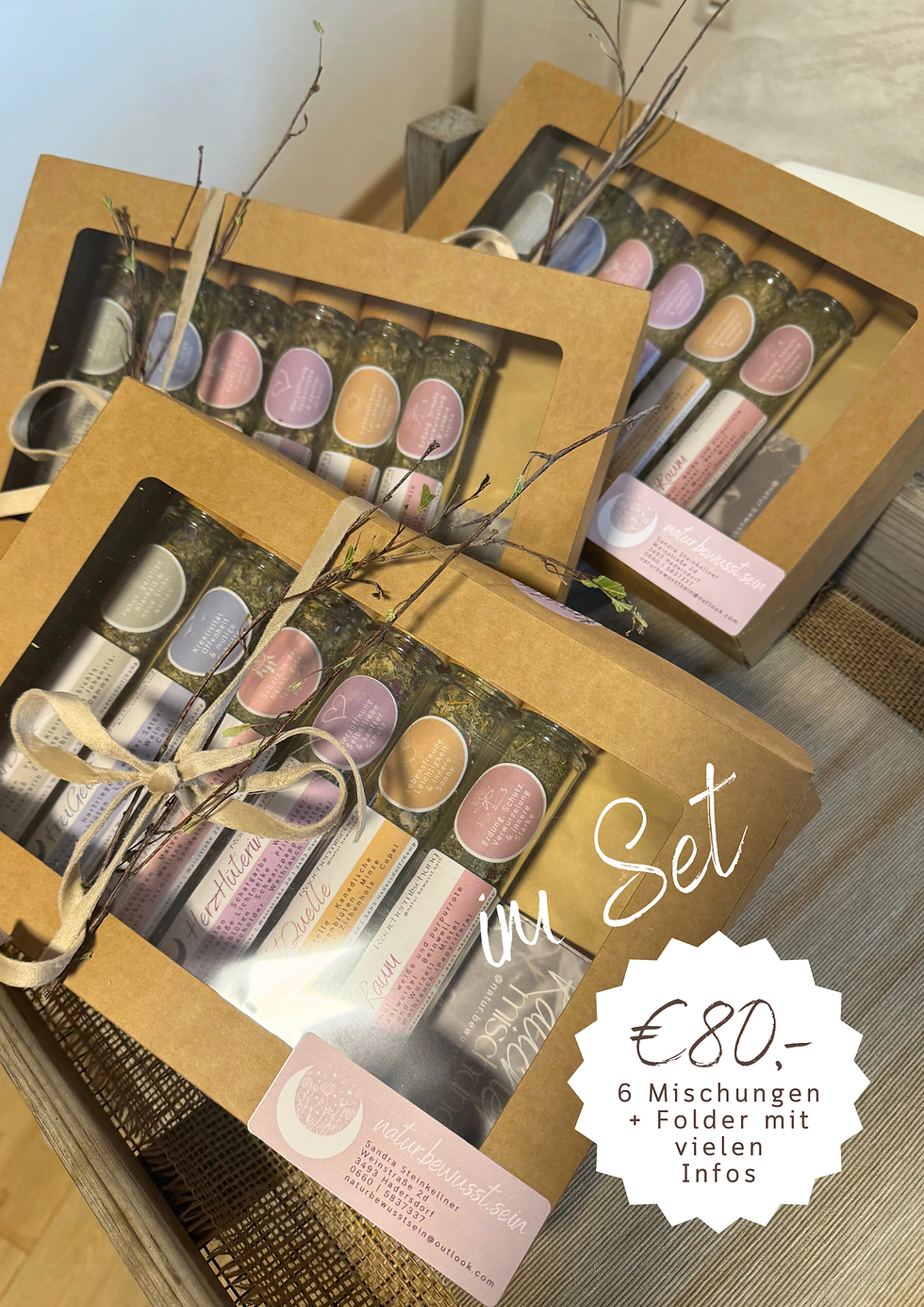 Kräuter, Harze und Blüten zum Räuchern – kraftvoll, reinigend, unterstützend. Für Rituale, besondere Übergänge oder einfach, um Raum und Stimmung zu klären. In stimmigen Mischungen oder als Räucherbündel.